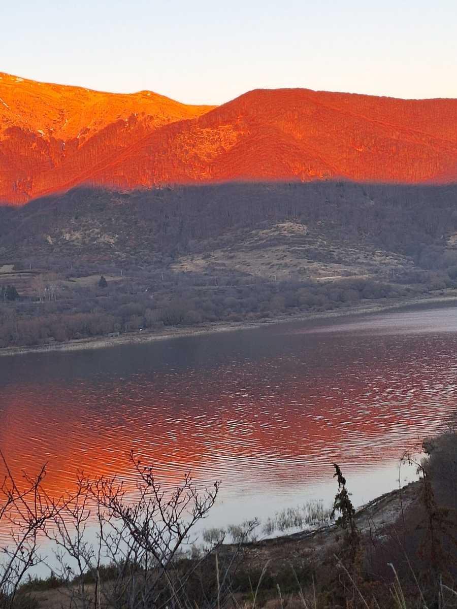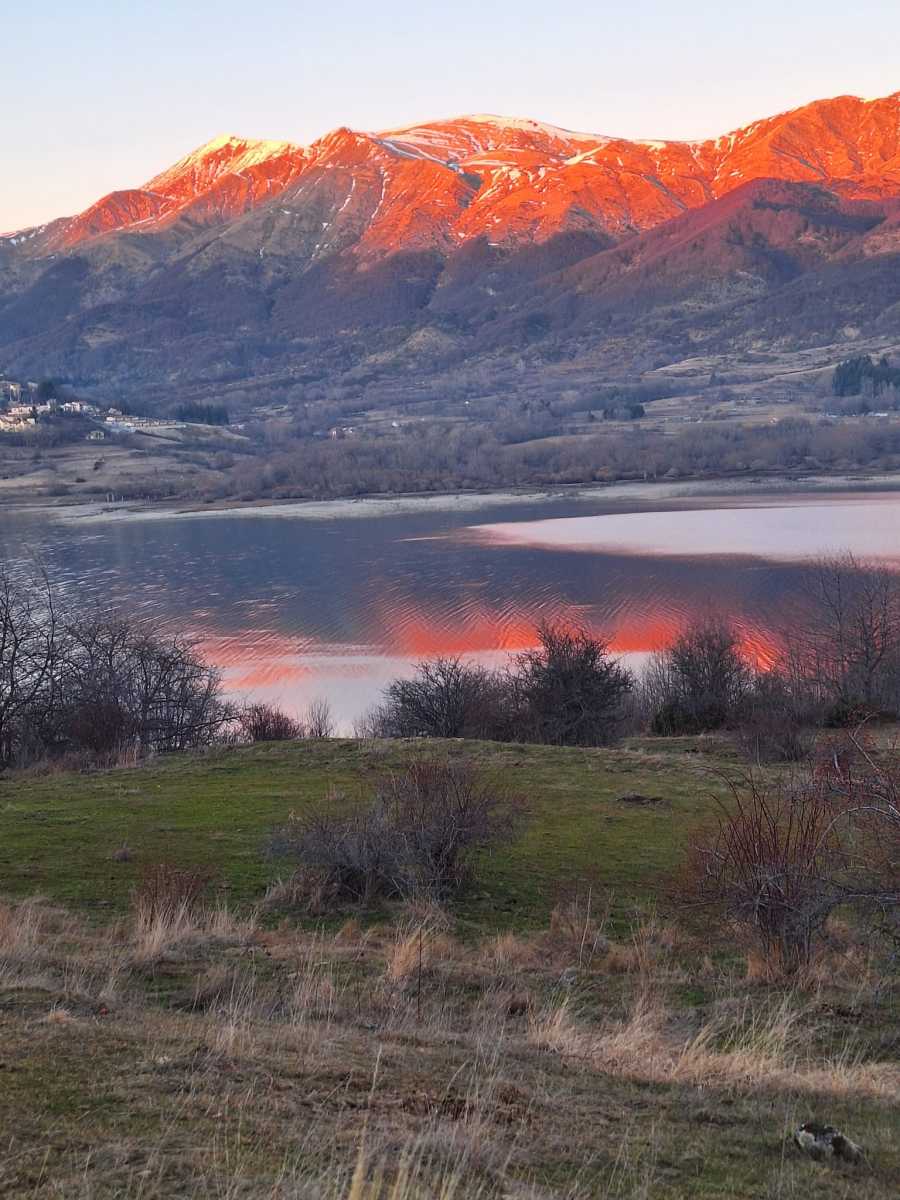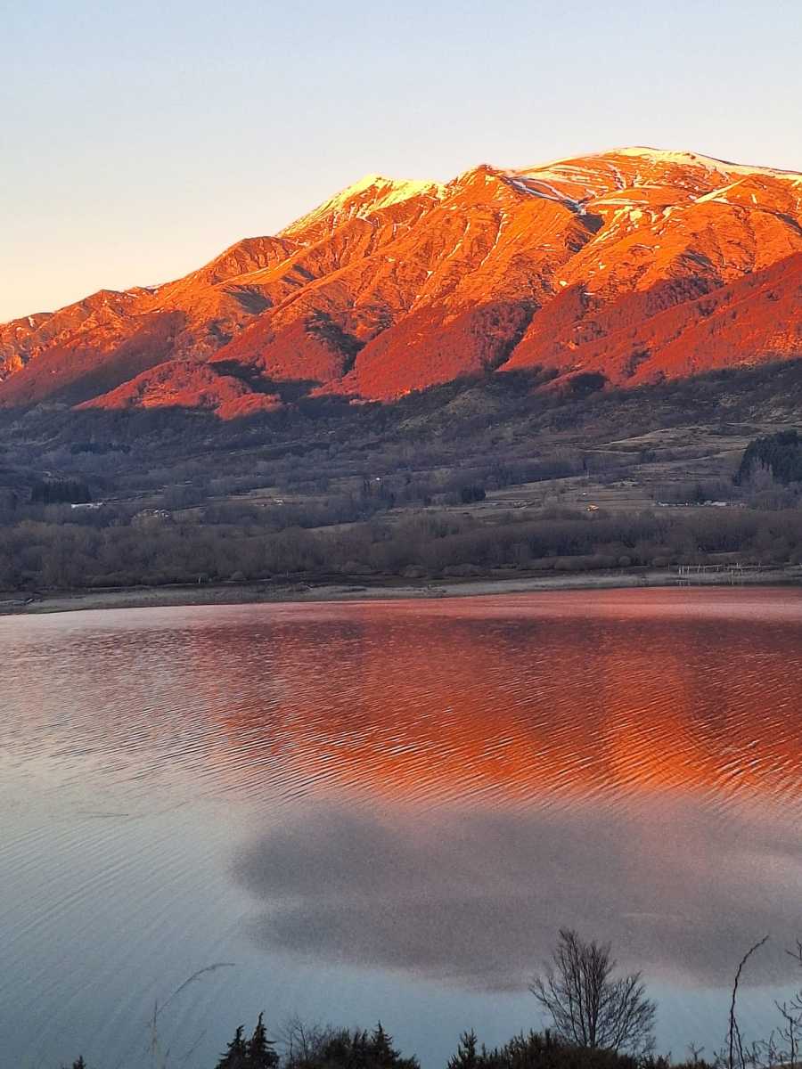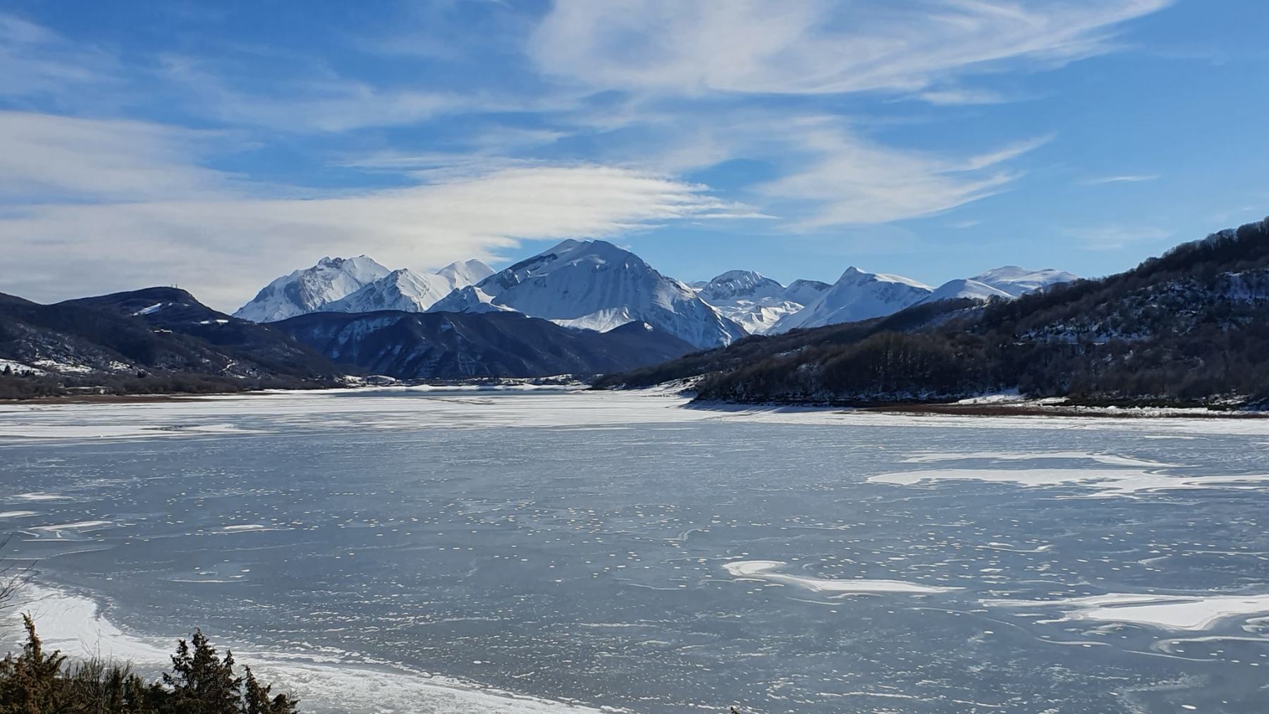 Lago di Campotosto ghiacciato e i monti che lo sovrastano…Buona serata a tutto il gruppo