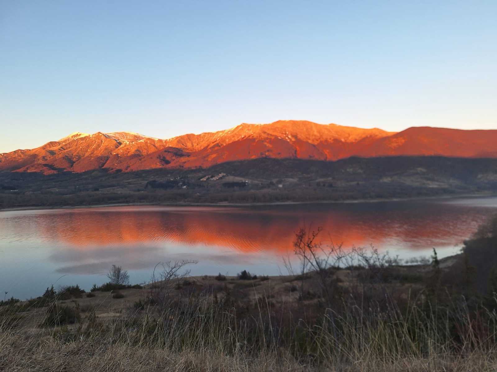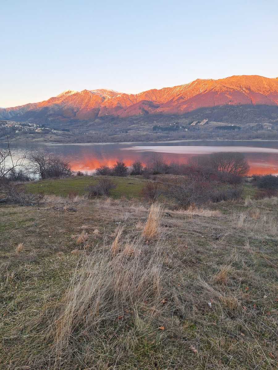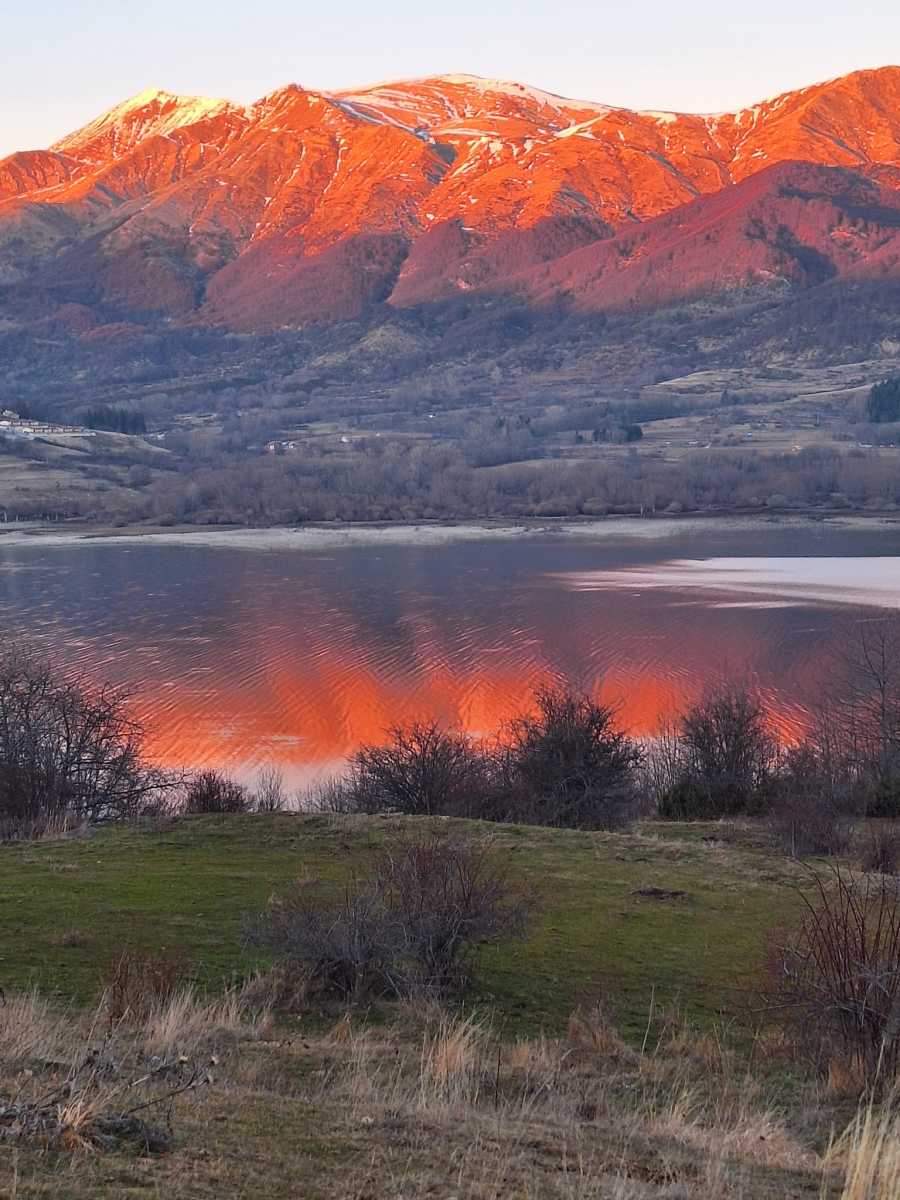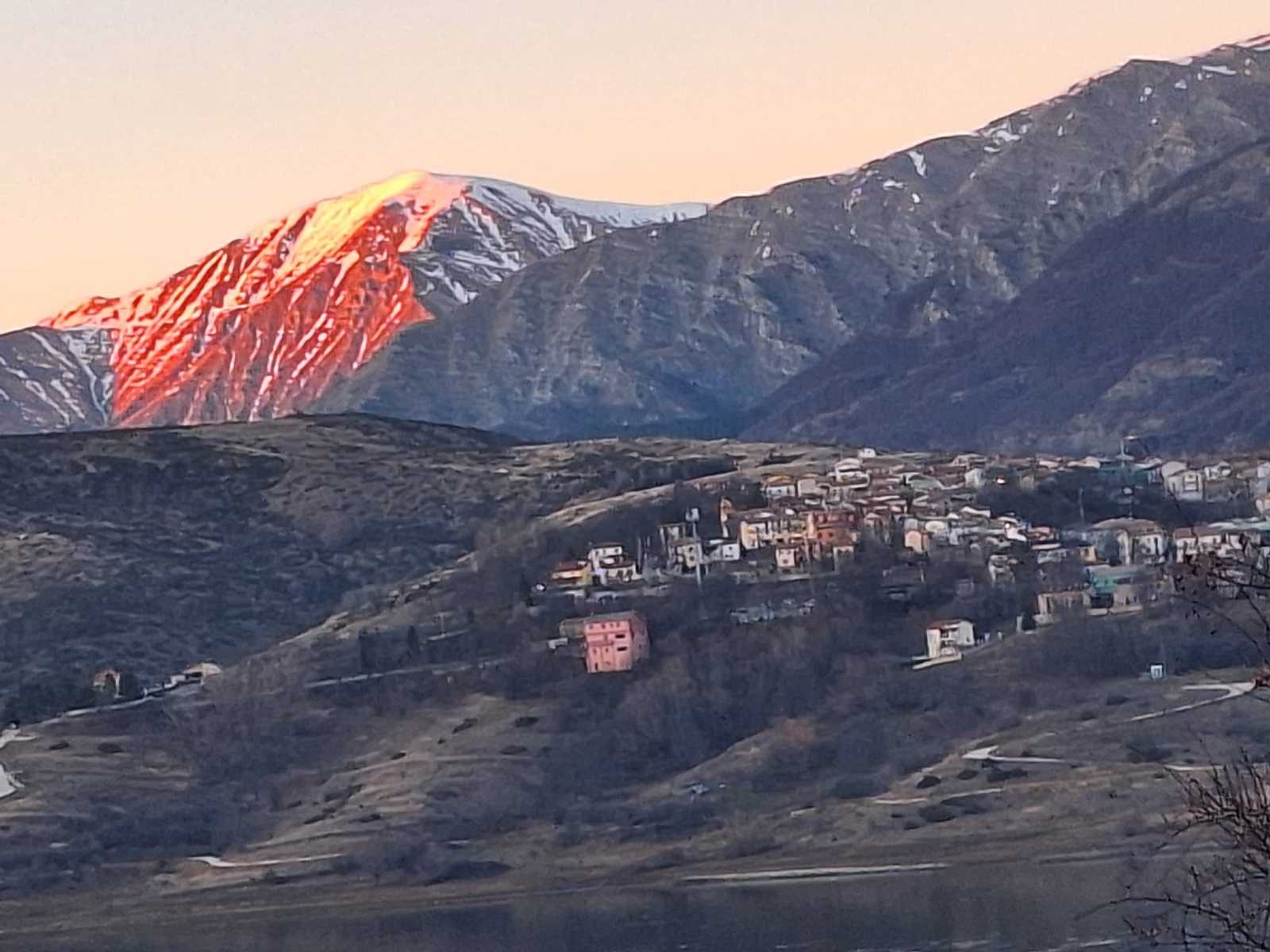 Lago di Campotosto ghiacciato e i monti che lo sovrastano…Buona serata a tutto il gruppo